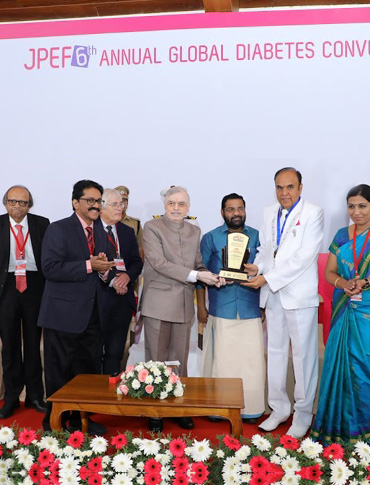 JPEF Stalwart Physician Award’ for the year 2018 was conferred to Dr. Arumugam Muruganathan (Governor of American College of Physicians-India Chapter) in recognition of his contributions to the science and society. The award was presented by the Hon. Governor of Kerala Shri Justice(Retd) P.Sathasivam during the JPEF 2018 Annual Global Diabetes Convention.